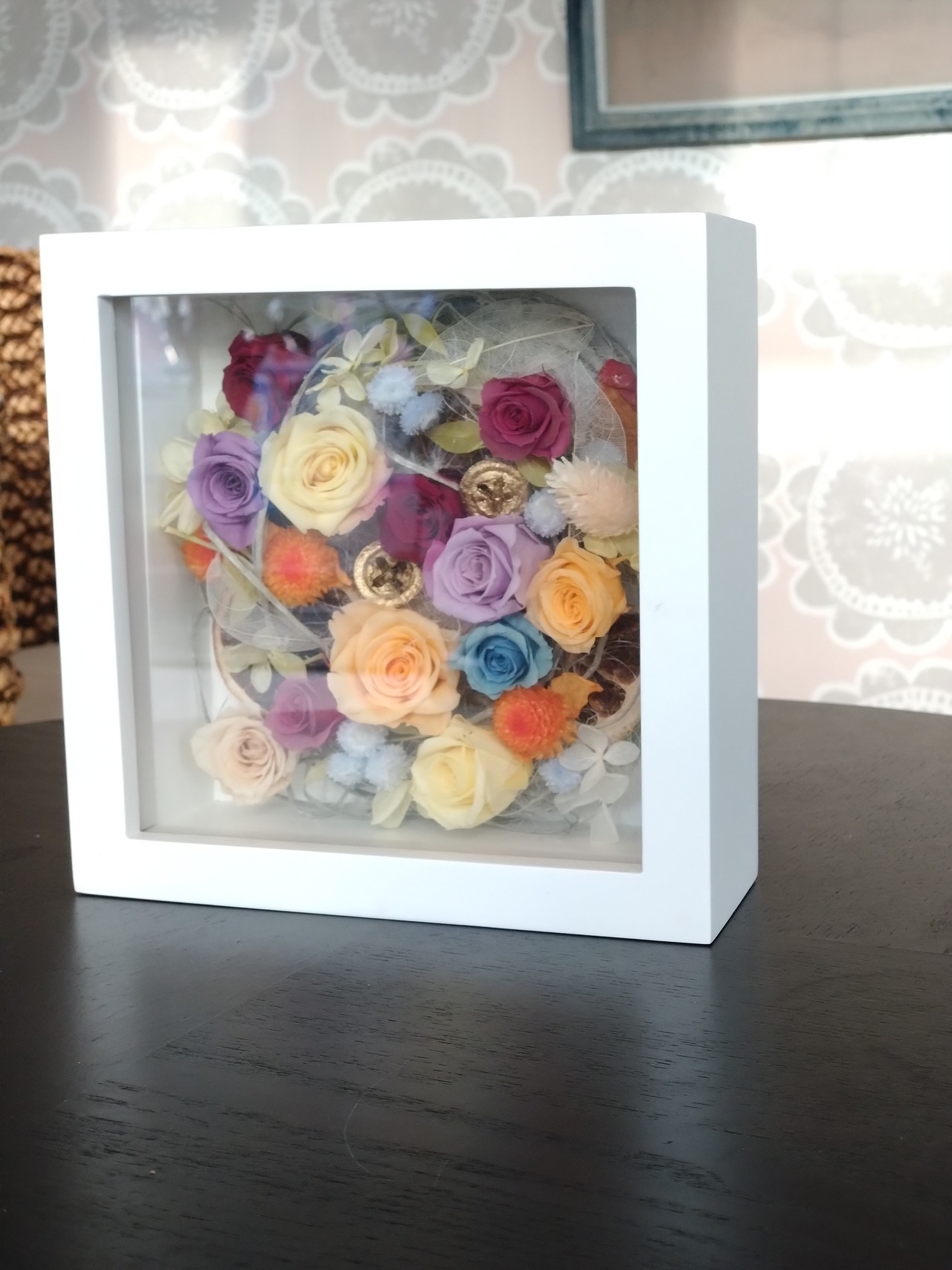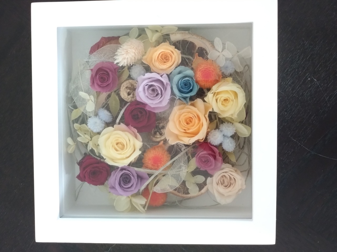 プリザーブドフラワー額です。